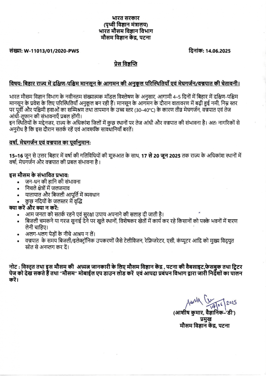 इसे भी पढ़ें: अगले 48 घंटे बिहार के 23 जिलों में होगी भयंकर बारिश, IMD ने जारी किया डबल अलर्ट