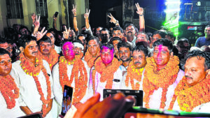पटना. नरेंद्र कुमार धीरज चाैथी बार बिहार पुलिस मेेंस एसोसिएशन के प्रदेश अध्यक्ष निर्वाचित हुए हैं. रविवार की देर रात चुनाव का रिजल्ट आया, जिसके बाद बीएमपी-5 में जश्न मनाया गया. समर्थकाें ने नरेंद्र धीरज के अलावा अन्य पदाधिकारियाें का फूलों से स्वागत किया. नरेंद्र कुमार धीरज ने अभिताभ बच्चन काे 285 मताें से हरा दिया. बीएमपी-5 में एसोसिएशन के 16 पदाें के लिए मतदान हुआ. महामंत्री पद पर राजू सिंह विजयी हुए. काेषाध्यक्ष का चुनाव ब्रजेश कुमार ने जीत लिया. इसी तरह संगठन महामंत्री उमेश दुबे बने. प्रदीप कुमार सिंह व प्रशांत कुमार प्रदेश उपाध्यक्ष वन वरत प्रसाद यादव व कौशल किशोर सिंह प्रदेश उपाध्यक्ष टू बने. संयुक्त महामंत्री वन के पद पर राजेश कुमार सिंह और अखिलेश कुमार सिंह ने कब्जा जमा लिया. वहीं, राहुल कुमार संयुक्त महामंत्री टू, संजीत पासवान संयुक्त महामंत्री थ्री बने. गाेपाल कुमार यादव व तरुण कुमार शर्मा सहायक महामंत्री वन, सुजीत कुमार यादव सहायक महामंत्री टू और वीरेंद्र कुमार सहायक महामंत्री थ्री के पद पर चुने गये.