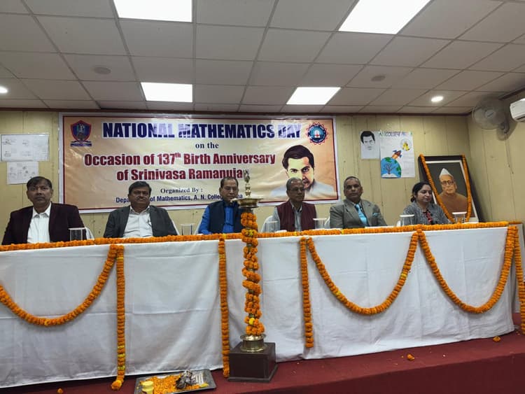 संवाददाता, पटना प्रख्यात गणितज्ञ श्रीनिवास रामानुजन की 137वीं जयंती के अवसर पर पटना के एएन कॉलेज में राष्ट्रीय गणित दिवस कार्यक्रम का आयोजन किया गया. महाविद्यालय के लाइब्रेरी सभागार में गणित विभाग की ओर से आयोजित इस कार्यक्रम का विधिवत शुभारंभ प्राचार्य प्रो प्रवीण कुमार, विशिष्ट अतिथि प्रो एमएम रहमान, प्रो श्याम कृष्ण सिंह, प्रो शंभू कुमार मिश्रा और गणित विभाग के विभागाध्यक्ष डॉ मनीष कुमार ने संयुक्त रूप से किया. मौके पर प्राचार्य ने छात्रों को संबोधित करते हुए श्रीनिवास रामानुजन के जीवन पर प्रकाश डाला. उन्होंने छात्रों को रामानुजन की तरह ही अपने देश को अंतरराष्ट्रीय स्तर पर स्थापित करने की प्रेरणा दी. वहीं गणित विभाग के विभागाध्यक्ष डॉ मनीष कुमार ने कहा कि गणित हमारे दैनिक जीवन से लेकर के हमारे जीवन के हर हिस्से तक जुड़ा हुआ है. आज टेक्नोलॉजी के क्षेत्र में प्रगति के पीछे गणित का अहम योगदान है. उन्होंने छात्रों को गणित तथा रामानुजन के विषय में विस्तारपूर्वक बताते हुए प्रोत्साहित किया. कार्यक्रम के दौरान ही गणित विभाग द्वारा राष्ट्रीय गणित दिवस 2024 के उपलक्ष्य में आयोजित भाषण, स्केचिंग, शाॅर्ट मूवी व क्विज में अव्वल स्थान प्राप्त करने वाले छात्रों, गणित विभाग की डॉ बंदना प्रिया, डॉ श्वेता सेमवाल, रिसर्च स्कॉलर अभिषेक शर्मा, महेन्द्र कुमार, राकेश कुमार तथा वरीय कर्मचारी भीम प्रसाद को सम्मानित भी किया गया. इस कार्यक्रम में मंच संचालन गणित विभाग की प्राध्यापका डॉ बंदना प्रिया ने किया तथा धन्यवाद ज्ञापन श्वेता सेमवाल ने किया. इस अवसर पर महाविद्यालय के गणमान्य लोगों के साथ विभाग के सभी छात्र उपस्थित रहे.