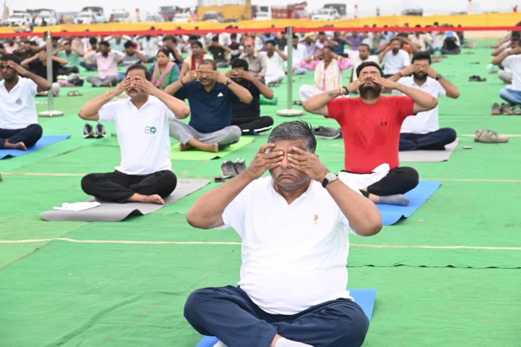 International Yoga Day: पटना में सफाई कर्मियों के साथ मंत्री नितिन नवीन ने किया योग, सांसद रविशंकर प्रसाद भी हुए शामिल