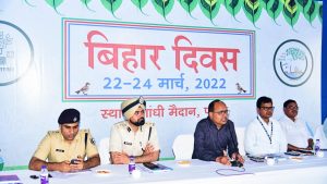 मुख्यमंत्री नीतीश कुमार 22 मार्च को गांधी मैदान में कार्यक्रम का उद्घाटन करेंगे. 24 मार्च को राज्यपाल इस कार्यक्रम का समापन करेंगे. प्रेस ब्रीफिंग में बताया गया कि बिहार दिवस पर कला, विज्ञान एवं वाणिज्य संकाय के प्रथम, द्वितीय एवं तृतीय टॉपर को पुरस्कृत किया जायेगा. राज्य गीत एवं बिहार गौरव गान की प्रस्तुति दी जायेगी. जल-जीवन-हरियाली थीम पर लेजर शो का आयोजन होगा.