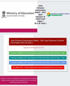 jeemain.nta.nic.in, jee main admit card 2021: नेशनल टेस्टिंग एजेंसी (एनटीए) ने बुधवार को जेइइ मेन तीसरे चरण (जेइइ मेन अप्रैल) का एडमिट कार्ड जारी कर दिया है. जेइइ मेन तीसरे चरण की परीक्षाएं 20 से 25 जुलाई तक कंप्यूटर मोड में आयोजित की जायेगी. कुल 334 शहरों में एग्जाम होंगे. बिहार के सात शहरों पटना, गया, भागलपुर, मुजफ्फरपुर, पूर्णिया, आरा व दरभंगा में परीक्षा केंद्र बनाये गये हैं.