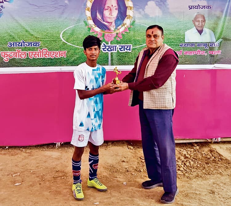 पटना. गर्दनीबाग स्थित संजय गांधी स्टेडियम में खेली जा रही रेखा राय मेमोरियल पटना जिला जूनियर डिवीजन फुटबॉल लीग में शनिवार को ओम इलेवन ने संत माइकल स्कूल एफसी को 3-0 से हराया. खेल के चौथे मिनट में साकिब आलम ने पहला गोल किया. इसके बाद दीपक कुमार ने 5वें और गौतम मूर्मू ने 10वें मिनट में गोल कर ओम इलेवन को 3-0 की शानदार जीत दिला दी. ओम इलेवन के गौतम मूर्मू को प्लेयर ऑफ द मैच का पुरस्कार दिया गया. एक अन्य मैच में टर्फ एरिना और विद्यार्थी एफसी के बीच खेला गया मुकाबला 1-1 की बराबरी पर छूटा. टर्फ एरिना की ओर से अथर्व सिंह ने खेल के 8वें मिनट में गोल कर अपनी टीम 1-0 से आगे कर दिया. पहले हाफ तक यही स्कोर रहा. दूसरे हाफ का खेल शुरू होते ही विद्यार्थी एफसी ने ताबड़तोड़ हमले शुरू किये और 39वें मिनट में आदर्श कुमार ने गोल कर मैच को बराबरी पर ला दिया. इसके बाद दोनों टीमों के खिलाड़यों ने गोल करने का प्रयास किया पर सफलता हाथ नहीं लगी. विद्यार्थी एफसी के आदर्श कुमार को प्लेयर ऑफ द मैच का पुरस्कार दिया गया. संघ के संयुक्त सचिव गोपीनाथ दत्ता ने बताया कि अपरिहार्य कारणों से 17 और 18 दिसंबर को होने वाले मैच स्थगित किया गया है़ यह मैच अब 27 दिसंबर के बाद खेला जायेगा़