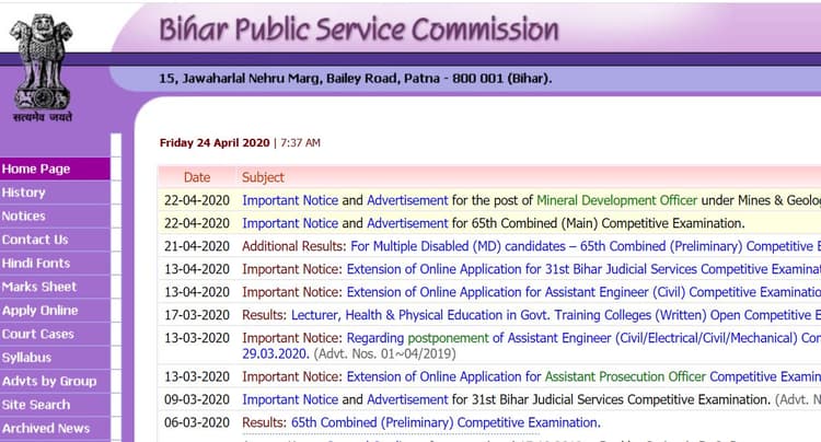परीक्षार्थी ये सुनिश्चित कर लें कि आवेदन की हार्डकॉपी स्वीकार करने की अंतिम तिथि 15 जून 2020 शाम 5 बजे तक ही है. इसे इस पते पर भेजना होगा- संयुक्त सह सचिव परीक्षा नियंत्रक, बिहार लोक सेवा आयोग, 15, जवाहरलाल नेहरू मार्ग (बेली रोड), पटना – 800001