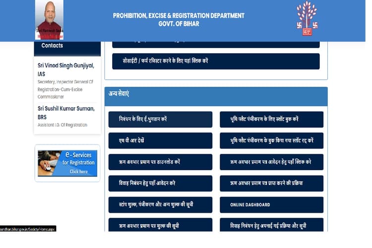 पेज के साइड में मैरेज, फर्म रजिस्ट्रेशन, डॉक्यूमेंट रजिस्ट्रेशन, जैसे ऑप्शन खुल जायेंगे. आपको जिसमें जाना है, उसमें एंट्री ले सकते हैं. ज्यादा पॉपुलर डॉक्यूमेंट रजिस्ट्रेशन होता है उसपर क्लिक करने के बाद एंट्री फॉर रजिस्ट्रेशन में जायेंगे.