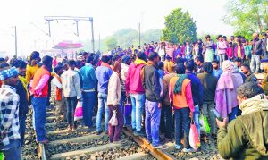 03264 डाउन ट्रेन जैसे ही रविवार की सुबह नदवां स्टेशन पहुंची, भीड़ के कारण वहां के यात्री ट्रेन में सवार नहीं हो पाये. इससे नाराज यात्रियों ने ट्रैक पर बैठ कर ट्रेन को करीब 76 मिनट तक नदवां स्टेशन पर रोके रखा.