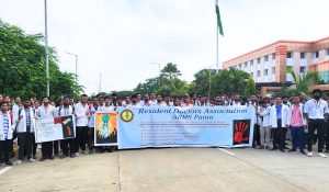 बैनर तले सीबीआई जांच की मांग कर रहे जूनियर डॉक्टर्स