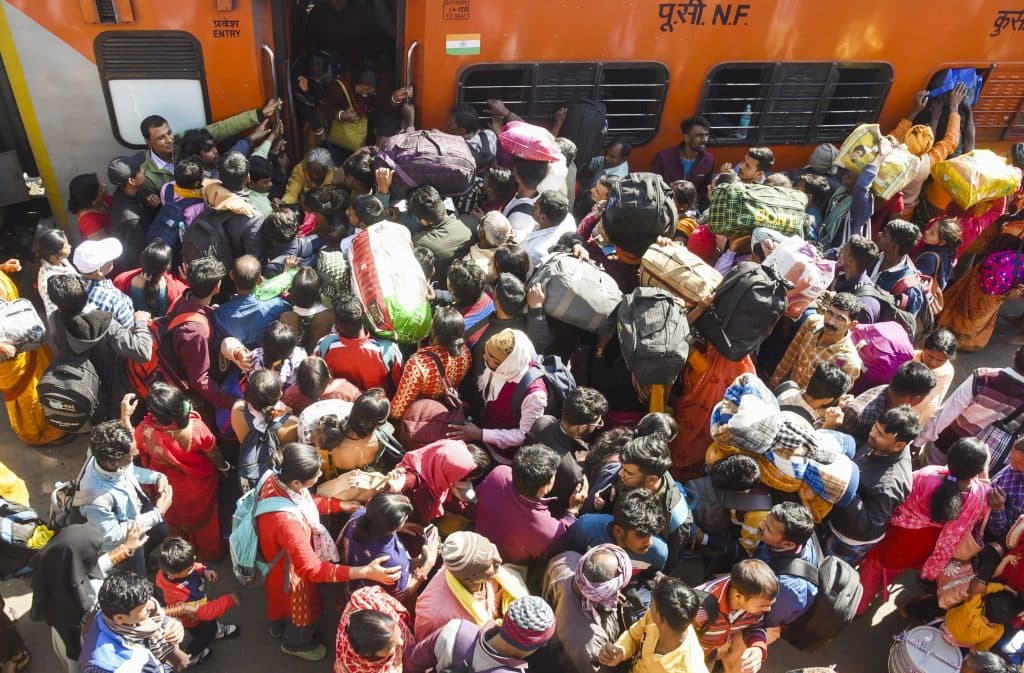 पटना जंक्शन पर उमड़ी भीड़ स्लीपर क्लास और एसी बोगियों में भी भरती दिखी. जिन लोगों ने पहले ही रिजर्वेशन ले रखा था वो अपनी सीट तक पहुंचने में बेबस दिखे. भीड़ ट्रेन की बोगियों में घुसी और रिजर्व सीटों पर भी कब्जा जमा लिया. ट्रेन की फर्श तक पर बैठकर लोग सफर करते दिखे.