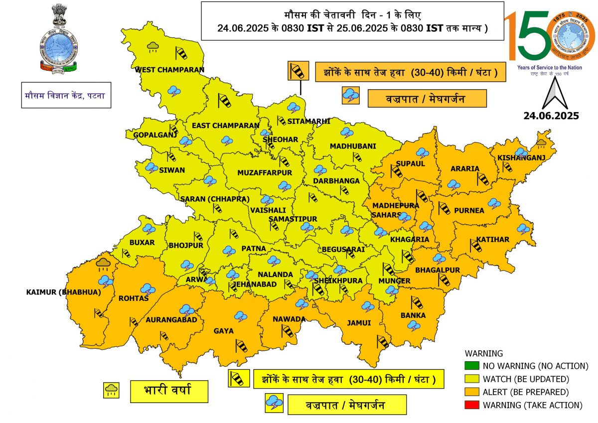बिहार के कई जिलों में ऑरेंज अलर्ट