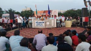 गांधी मैदान एक छोर पर पटना के कलाकार, संस्कृतिकर्मी स्वागत कर रहे हैं इप्टा के “ढाई आखर प्रेम” की सांस्कृतिक यात्रा की. ज़िंदा रहने, प्यार करने, मिलजुल कर रहने के गीतों की प्रस्तुति हो रही है. नाटकों से आज के समय और हालत पर व्यंग्य किया जा रहा और नेहरू के द्वारा असली भारत माता के दर्शन हो रहे हैं.