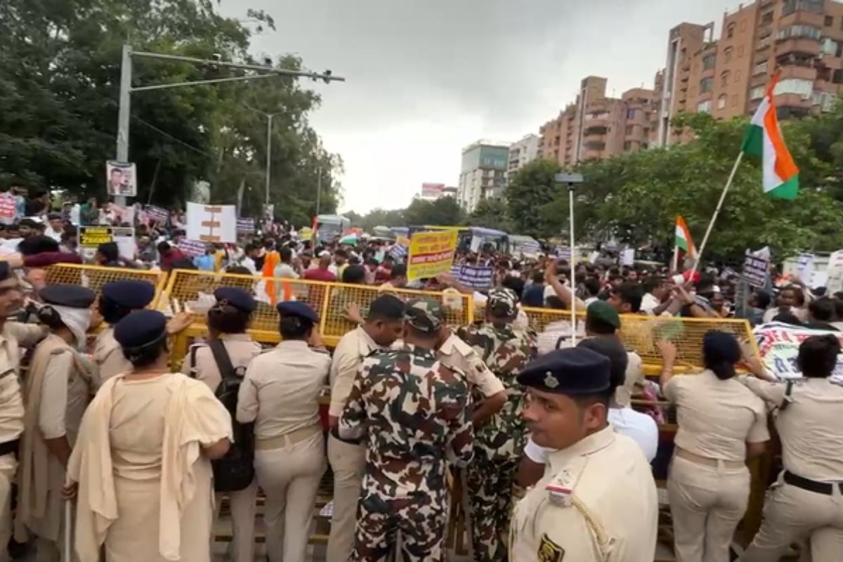 जेपी गोलंबर के पास अपनी मांगों को लेकर अभ्यर्थियों ने जमकर नारे लगाए. हाथों में पोस्टर लेकर अभ्यर्थी पहुंचे हैं. प्रदर्शन कर रहे अभ्यर्थियों की मांग है कि चौथे चरण की शिक्षक भर्ती परीक्षा में कम से कम 1 लाख 20 हजार सीटों पर बहाली निकाली जाए. दरअसल, पहले सरकार ने दावा किया था कि चौथे चरण में 1 लाख से ज्यादा पदों पर नियुक्ति होगी. लेकिन टीचर्स डे के मौके पर शिक्षा मंत्री ने घोषणा की कि केवल 26 हजार से कुछ अधिक पद ही शामिल किए जाएंगे. इसी के बाद अभ्यर्थियों का विरोध तेज हो गया.