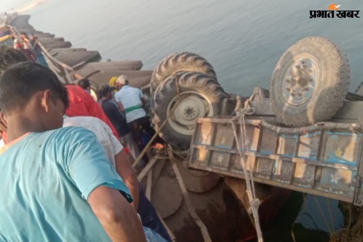 पटना के दानापुर में गंगा नदी पर बने पीपा पुल पर गुरुवार की सुबह बड़ा हादसा हो गया. उत्तरी छोर पर पुल की रेलिंग तोड़ते हुए एक आलू लदा ट्रैक्टर गंगा नदी में गिर गया, जिससे चालक गंभीर रूप से घायल हो गया. इस घटना का विडियो भी सामने आया है.