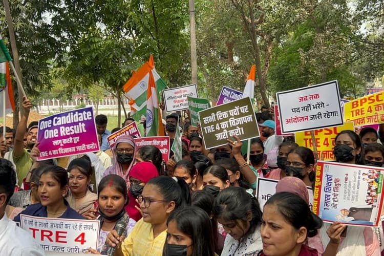 प्रदर्शन में शामिल छात्र ‘हमें हमारा हक दो’ और ‘नीतीश के सम्मान में बेटियां मैदान में’ जैसे पोस्टर लेकर पहुंचे थे. सभी की मांग थी कि TRE-4 का नोटिफिकेशन जल्द जारी किया जाए.