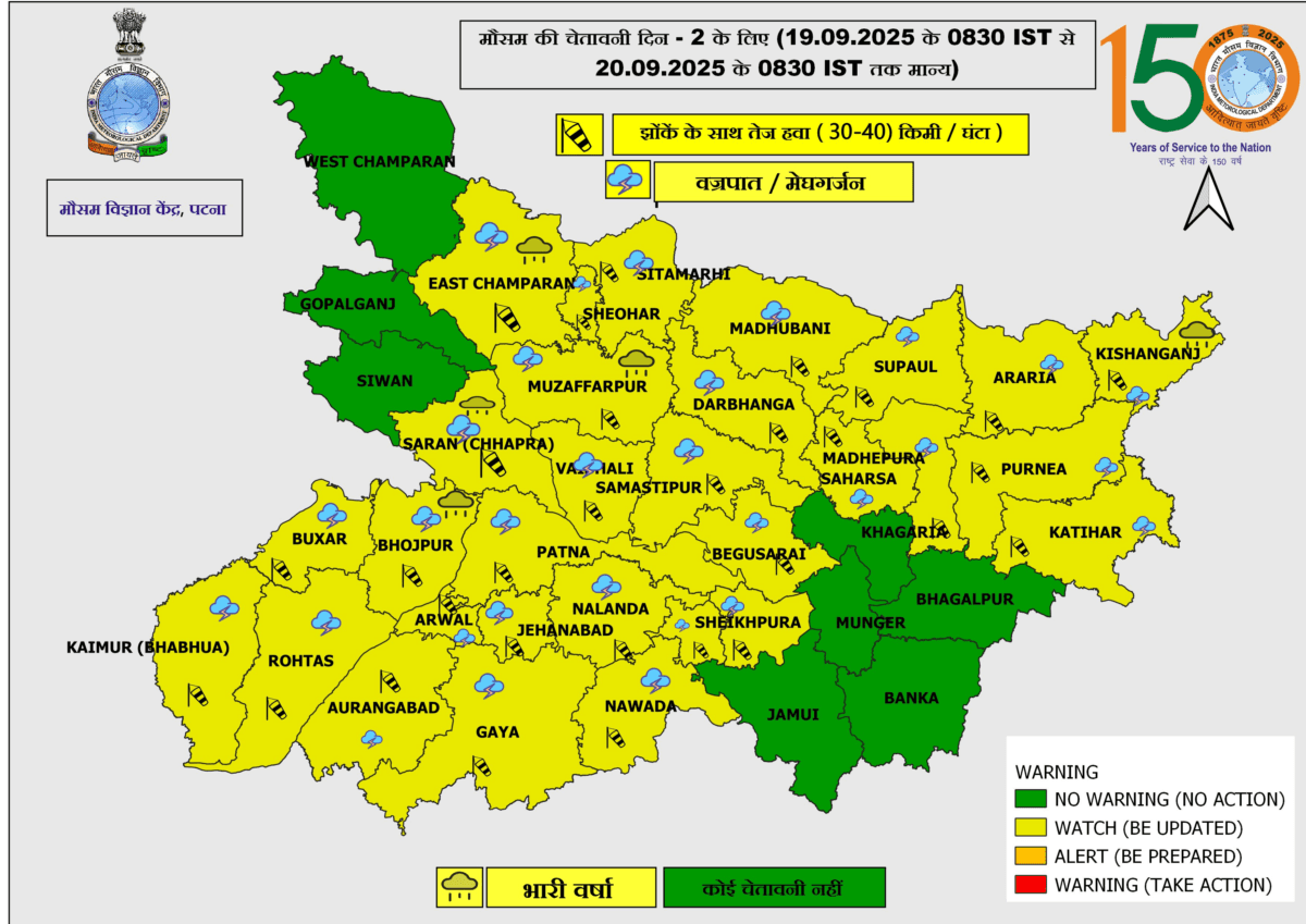 Patna Weather: पटना समेत 31 जिलों में 20 सितंबर तक होगी बारिश, IMD ने जारी किया येलो अलर्ट
