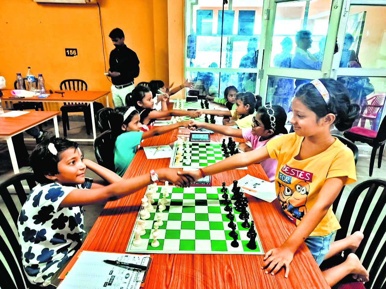 पटना. पाटलिपुत्र स्पोर्ट्स कॉम्प्लेक्स स्थित बिहार स्कूल ऑफ चेस में चल रही बिहार राज्य अंडर-7 शतरंज प्रतियोगिता में शुक्रवार को चौथे चक्र की समाप्ति के बाद बालक वर्ग में चार अंकों के साथ पटना के आरुष कुमार व कार्तिकेय कुमार संयुक्त रूप से शीर्ष पर हैं. वहीं, बालिका वर्ग में वंशिका माहेश्वरी अकेले शीर्ष पर चल रही है. चौथे चक्र में बोर्ड नंबर एक पर पटना के आरुष ने लखीसराय के कृष्णा को पराजित किया. दो नंबर बोर्ड पर पटना के कार्तिकेय ने बेगूसराय के विष्णु वैभव को परास्त किया. बालिका वर्ग में पटना की वंशिका माहेश्वरी ने पटना की ही देविशा आनंद को हराया.