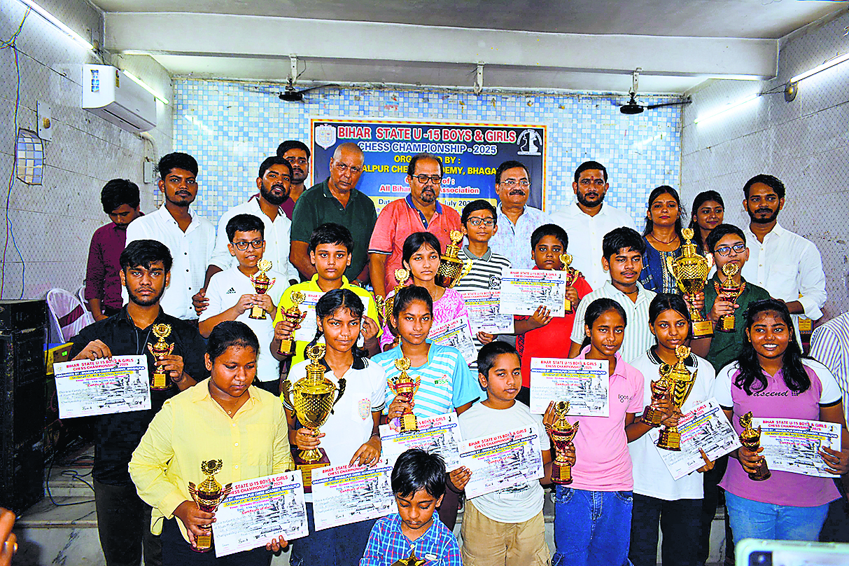 पटना. अखिल बिहार शतरंज संघ के तत्वावधान में भागलपुर के देवीबाबू धर्मशाला में आयोजित चार दिवसीय बिहार राज्य सब जूनियर शतरंज प्रतियोगिता में भोजपुर की अर्पिता और नवादा के अंजिष्णु ने जीता राज्य सब जूनियर शतरंज चैंपियन बने. 25 रेटेड खिलाड़ियों को पीछे छोड़ कर नवादा के अनरेटेड खिलाड़ी अंजिष्णु राज ने प्रतियोगिता का खिताब जीता. सात चक्रों की इस प्रतियोगिता में कुल पांच खिलाड़ियों को साढ़े पांच अंक प्राप्त हुए लेकिन बेहतर टाई ब्रेक अंकों के आधार पर अंजिष्णु को विजेता और पटना के प्रत्यूष को उपविजेता घोषित किया गया. अंतिम चक्र के रोचक मुकाबले में शीर्ष पर चल रहे प्रत्यूष और ओम कश्यप का मुकाबला अनिर्णीत रहा. बोर्ड नंबर दो पर खेल रहे देवांश केशरी और ईशान सात्वत का मुकाबला भी ड्रा रहा. वहीं, तीन नंबर बोर्ड पर साढ़े चार अंकों के साथ खेल रहे अंजिष्णु ने दरभंगा के जयेश मिश्रा को पराजित कर बेहतर टाई ब्रेक अंकों के साथ प्रतियोगिता जीत ली. बालिका वर्ग में शीर्ष पर चल रही पटना की शालिनी का मैच प्रतीक्षा के साथ अनिर्णीत समाप्त हुआ जबकि दो नंबर बोर्ड पर काले मोहरों से खेल रही भोजपुर की अर्पिता ने प्रशंसा को पराजित कर छह में साढ़े पांच अंक अर्जित कर खिताब जीत लिया. बाजी ड्राॅ कर पांच अंकों के साथ रही पटना की शालिनी को उपविजेता का खिताब मिला.