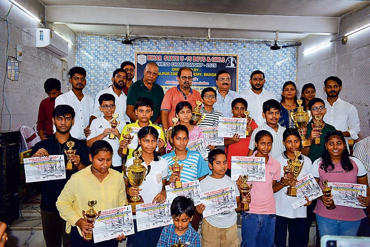 पटना. अखिल बिहार शतरंज संघ के तत्वावधान में भागलपुर के देवीबाबू धर्मशाला में आयोजित चार दिवसीय बिहार राज्य सब जूनियर शतरंज प्रतियोगिता में भोजपुर की अर्पिता और नवादा के अंजिष्णु ने जीता राज्य सब जूनियर शतरंज चैंपियन बने. 25 रेटेड खिलाड़ियों को पीछे छोड़ कर नवादा के अनरेटेड खिलाड़ी अंजिष्णु राज ने प्रतियोगिता का खिताब जीता. सात चक्रों की इस प्रतियोगिता में कुल पांच खिलाड़ियों को साढ़े पांच अंक प्राप्त हुए लेकिन बेहतर टाई ब्रेक अंकों के आधार पर अंजिष्णु को विजेता और पटना के प्रत्यूष को उपविजेता घोषित किया गया. अंतिम चक्र के रोचक मुकाबले में शीर्ष पर चल रहे प्रत्यूष और ओम कश्यप का मुकाबला अनिर्णीत रहा. बोर्ड नंबर दो पर खेल रहे देवांश केशरी और ईशान सात्वत का मुकाबला भी ड्रा रहा. वहीं, तीन नंबर बोर्ड पर साढ़े चार अंकों के साथ खेल रहे अंजिष्णु ने दरभंगा के जयेश मिश्रा को पराजित कर बेहतर टाई ब्रेक अंकों के साथ प्रतियोगिता जीत ली. बालिका वर्ग में शीर्ष पर चल रही पटना की शालिनी का मैच प्रतीक्षा के साथ अनिर्णीत समाप्त हुआ जबकि दो नंबर बोर्ड पर काले मोहरों से खेल रही भोजपुर की अर्पिता ने प्रशंसा को पराजित कर छह में साढ़े पांच अंक अर्जित कर खिताब जीत लिया. बाजी ड्राॅ कर पांच अंकों के साथ रही पटना की शालिनी को उपविजेता का खिताब मिला.