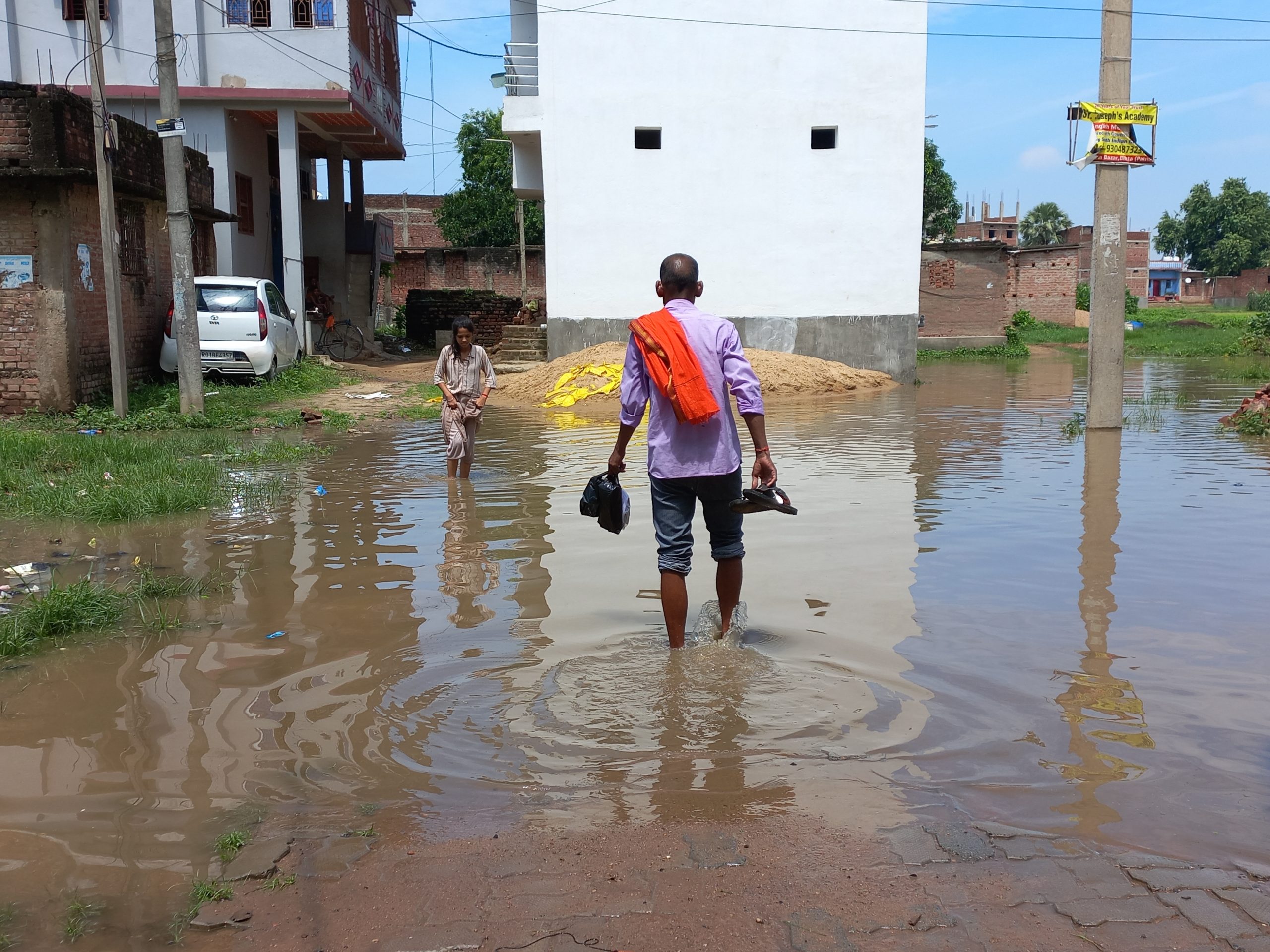 बिहटा. बिहटा नगर परिषद के वार्ड नं नौ में हल्की बारिश के बाद नाले का पानी जमा होने से सैकड़ों लोगों का रास्ता बंद हो गया है. रास्ते पर घुटने भर पानी जमा हो गया है. जरूतमंद गंदे पानी के बीच से आ-जा रहे हैं. दरअसल नौ नंबर वार्ड में नाले के पानी की निकासी नहीं होने से कई सालों से घर के आगे पानी जमा हो रहा है. इस पानी में कीड़े हो गये हैं, जबकि उससे निकलने वाली बदबू से लोगों का जीना मुहाल हो गया है. इधर दर्जनों ग्रामीण नगर परिषद में कई दफा बार शिकायत कर चुके हैं. लेकिन कोई कार्रवाई नहीं हुई है. सोनू कुमार, बंटी कुमार,धर्मदेव प्रसाद, मुन्ना कुमार, मंटू कुमार, शंभू साह, वर्षा कुमारी ने बताया कि यहां विकास के नाम पर छाई बिछा दिया गया था. जो पानी में बह गया. जलजमाव से बच्चों का पठन पाठन पूरी तरह से बंद हो गया है. वहीं नगर मुख्य पार्षद प्रियंका कुमारी ने कहा कि इस वार्ड में नाले की निकासी नहीं होने के कारण समस्या उत्पन्न हो रही है. फिलहाल जलजमाव से लोगों को जल्द राहत मिलेगी. इसके लिए अधिकारियों से बात कर समस्या का समाधान कराया जायेगा.