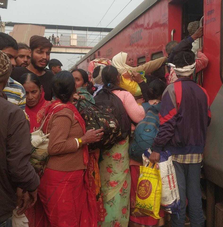 मौनी अमावस्या को लेकर ट्रेन में भीड़ हादसे के बाद भी बरकरार रही. हालत यह है कि प्रयागराज जाने वाली ट्रेन में लोगों के खड़े होने की भी जगह नहीं बची थी.