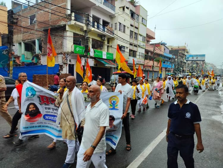 संवाददाता, पटना पतंजलि योग समिति की ओर से शुक्रवार को भव्य प्रभात फेरी का आयोजन किया गया. प्रभात फेरी सुबह छह बजे शुरू होकर दिनकर चौक एवं प्रेमचंद गोलंबर होते हुये मोइनुल हक स्टेडियम स्थित भारतीय खेल प्राधिकरण के प्रांगण में जाकर सम्पन्न हुयी. प्रभात फेरी में करीब 200 योग साधकों ने भाग लिया. सभी योग साधक पतंजलि के झंडों के साथ, पंक्तिबद्ध एवं अनुशासित होकर घर-घर में हम जायेंगे, सबको योग सिखायेंगे, भारत माता की जय, वंदे मातरम् जैसे उत्साहवर्धक नारों के साथ लोगों को योग के प्रति जागरूक किया. इस अवसर पर समिति की ओर शनिवार को आयोजित होने वाले योग दिवस कार्यक्रम की विस्तृत जानकारी दी गयी. समिति की ओर से बताया गया कि स्वास्थ्य मंत्री एवं भारतीय जनता पार्टी के प्रदेश अध्यक्ष ने भी इस आयोजन में अपनी भागीदारी की इच्छा जतायी है. इसके अलावा जिला अधिकारी पटना, आयुक्त, एवं अनुमंडल पदाधिकारी सहित कई गणमान्य अधिकारियों को भी मुख्य अतिथि के रूप में आमंत्रित किया गया है. पतंजलि योग समिति के वरिष्ठ प्रांत प्रभारी अजीत कुमार ने लोगों से आग्रह किया है कि अधिक संख्या में उपस्थित होकर इस राष्ट्रीय आयोजन को गौरवशाली बनाएं. इस अवसर पर जिला प्रभारी शैलेंद्र कुमार, राज्य प्रभारी मुक्तेश्वर सिंह, कार्यालय प्रभारी आरती बरनवाल, योग शिक्षिका रीना श्रीवास्तव, अखिलेश्वर प्रसाद, चंद्रभानु प्रसाद सहित कई कार्यकर्ताओं ने महत्वपूर्ण भूमिका निभायी.
