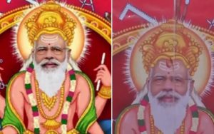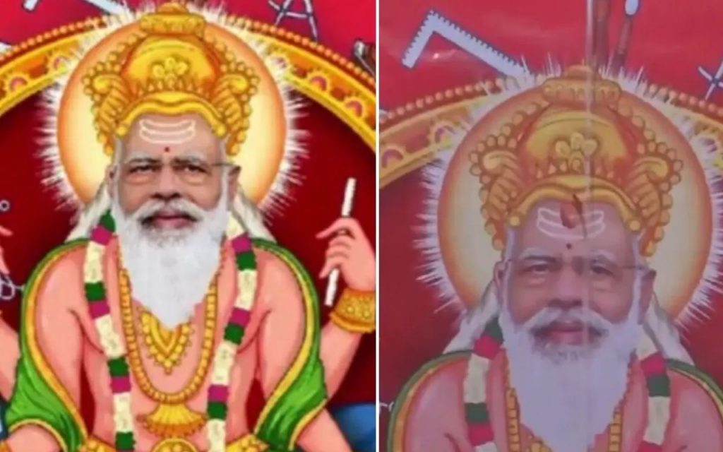 BJP कार्यकर्ताओं ने भगवान विश्वकर्मा के रूप में पीएम मोदी की तस्वीर बनाकर की पूजा, दुधाभिषेक कर गाई आरती