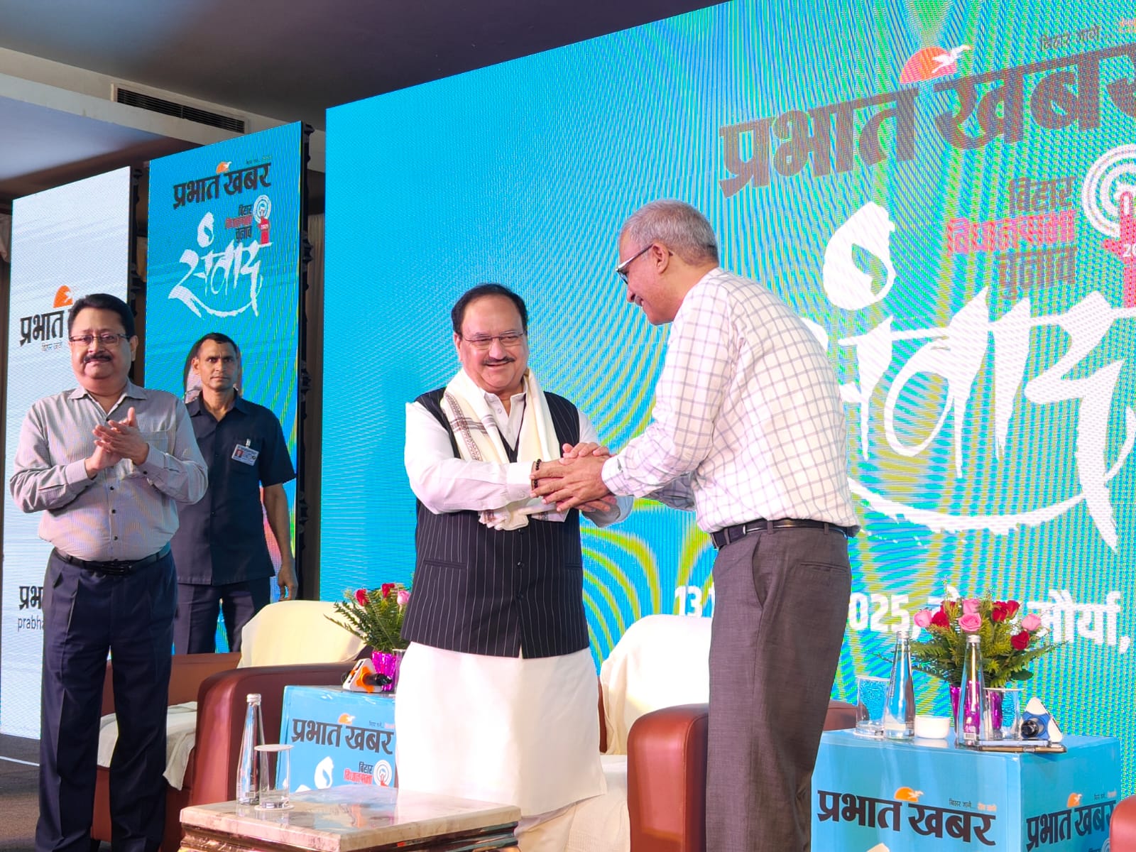 प्रभात खबर के संवाद कार्यक्रम भारतीय जनता पार्टी (BJP) के राष्ट्रीय अध्यक्ष जेपी नड्डा प्रभात खबर के संवाद कार्यक्रम में पहुंचे. प्रभात खबर समूह के प्रधान संपादक आशुतोष चतुर्वेदी ने उनका स्वागत किया. कार्यक्रम में बिहार भाजपा के प्रदेश अध्यक्ष और बिहार के उप मुख्यमंत्री सम्राट चौधरी पहुंचे.