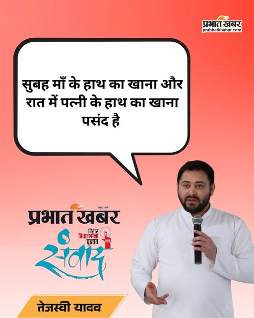 तेजस्वी यादव ने कहा कि सुबह मां के हाथ का खाना और रात में पत्नी के हाथ का खाना पसंद है.