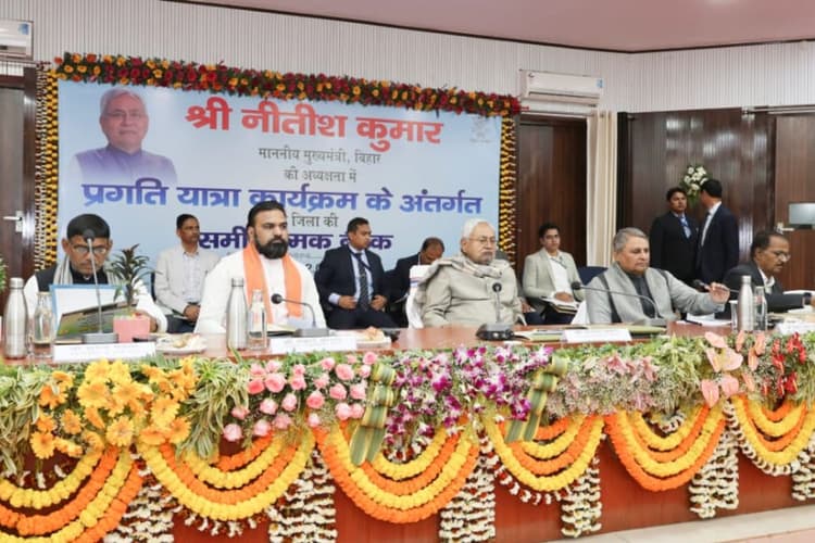 Pragati Yatra in Patna: मुख्यमंत्री नीतीश कुमार प्रगति यात्रा के दौरान पांच फरवरी को मुंगेर जिला में रहेंगे. मुख्यमंत्री छह फरवरी को लखीसराय व शेखपुरा जिला, सात को जमुई जिला, दस को नवादा जिला, 11 को औरंगाबाद जिला, 13 को गया जिला, 14 को जहानाबाद व अरवल जिला, 15 को बक्सर, 16 को भोजपुर, 18 को कैमूर, 19 को रोहतास, 20 को नालंदा और 21 फरवरी को पटना जिले में प्रगति यात्रा करेंगे.