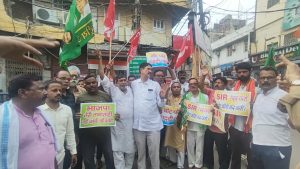 पटना सिटी. इंडिया महागठबंधन दल के सांसदों को दिल्ली में लोकसभा के नेता प्रतिपक्ष राहुल गांधी के नेतृत्व में संसद भवन से निर्वाचन आयोग मिलने जा रहे सांसदों की दिल्ली पुलिस द्वारा गिरफ्तारी का विरोध करते हुए पटना साहिब महागठबंधन के नेताओं ने आक्रोश मार्च निकाल पुतला फूंका. शहीद भगत सिंह चौक पर आयोजित पुतला दहन में केंद्र सरकार की तानाशाही का विरोध करते हुए पीएम नरेंद्र मोदी का पुतला जलाया. आंदोलन का नेतृत्व प्रदेश महासचिव प्रदीप मेहता कर रहे थे. आंदोलन में कांग्रेस के राजकुमार राजन पूर्व पार्षद बलराम चौधरी, माले के शंभू नाथ मेहता, देवरत्न प्रसाद, डॉ इकबाल अहमद, पार्षद मनोज मेहता, सुजीत कसेरा, उमेश पंडित, इजाजुद्दीन सानू, अशोक यादव, पंकज रजक, अजीत कुशवाहा, अभय जायसवाल, मुन्ना जायसवाल, माया गुप्ता, नीतू सिंह निषाद, संगीता यादव, विनोद अवस्थी, विक्की आनंद कुशवाहा, शमीम अख्तर शंभू शरण प्रसाद, सुजीत कुशवाहा, सरदार जगजीत सिंह, मो फिरोज, रघुनाथ प्रसाद,रामजी यादव, आलोक कुमार असगर अली, रंजीत चंद्रवंशी, केसरी कुमार, रवि कुशवाहा, सनी यादव शिवू, राजेश रजक समेत अन्य शामिल थे.