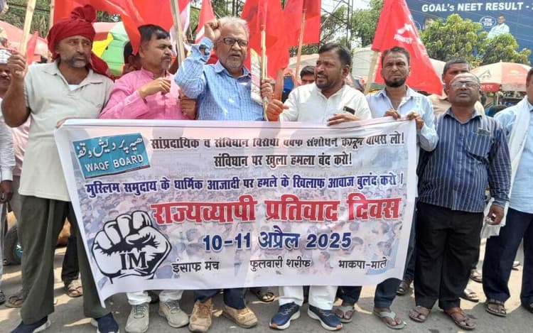 फुलवारीशरीफ. वक्फ संशोधन बिल 2025 के खिलाफ इंसाफ मंच के बैनर तले 10-11 अप्रैल को राज्यव्यापी प्रतिवाद दिवस आयोजित किया गया. प्रतिवाद ईशोपुर से जुलूस के रूप में प्रारंभ हुआ, जो थाना के पास जनसभा में तब्दील हो गयी. सभा की अगुआई भाकपा माले के प्रखंड सचिव गुरुदेव दास ने की.