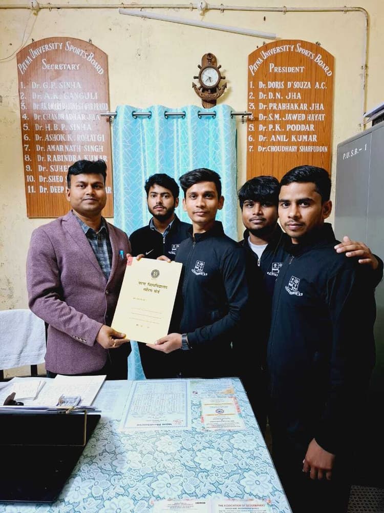 ऑल इंडिया इंटर यूनिवर्सिटी योग प्रतियोगिता में पटना विश्वविद्यालय के छात्र प्रभात कुमार ने दूसरा स्थान प्राप्त कर विश्वविद्यालय का नाम रोशन किया है. योग प्रतियोगिता भुवनेश्वर के कीट विश्वविद्यालय में 24 से 28 दिसंबर तक आयोजित की गयी थी. प्रतियोगिता में पटना कॉलेज संस्कृत विभाग के छात्र प्रभात कुमार ने दूसरा स्थान प्राप्त करके रजत पदक अपने नाम किया है. इस अवसर पर पटना विश्वविद्यालय के खेल सचिव डॉ दीप नारायण कुमार ने कहा कि प्रभात ने राज भवन द्वारा आयोजित बिहार राज्य स्तरीय योग प्रतियोगिता में भी प्रथम स्थान प्राप्त किया है. इन्हें राज्यपाल द्वारा पुरस्कृत भी किया गया था. ऑल इंडिया में दूसरा स्थान प्राप्त करने पर विश्वविद्यालय के कुलपति प्रोफेसर अजय कुमार सिंह, डीन प्रो अनिल कुमार, कुलसचिव प्रोफेसर शालिनी, प्रॉक्टर प्रो मनोज कुमार सिंहा, स्पोर्ट्स बोर्ड के अध्यक्ष डॉ चौधरी शरफुद्दीन, राष्ट्रीय सेवा योजना के समन्वयक प्रो सुहेली मेहता, पटना कॉलेज के प्राचार्य प्रो संजय कुमार सिन्हा, डॉ अखिलेश कुमार गुप्ता सहित अन्य शिक्षकों ने विश्वविद्यालय का नाम रोशन करने पर बधाई दी है.डिस्क्लेमर: यह प्रभात खबर समाचार पत्र की ऑटोमेटेड न्यूज फीड है. इसे प्रभात खबर डॉट कॉम की टीम ने संपादित नहीं किया है