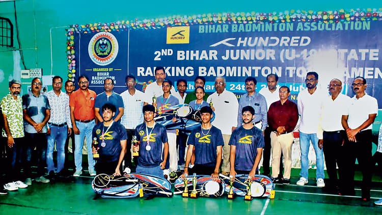 खेल संवाददाता, पटना : बिहार बैडमिंटन संघ के तत्वावधान में खगड़िया जिला बैडमिंटन संघ द्वारा खगड़िया के चित्रगुप्त नगर में आयोजित हंड्रेड द्वितीय बिहार स्टेट जूनियर रैंकिंग बैडमिंटन टूर्नामेंट में पटना के खिलाड़ियों का जलवा रहा. अंडर-19 बालक वर्ग में उलटफेर करते हुए एकल के फाइनल मुकाबले में पटना के रणवीर सिंह ने मुंगेर के पराग सिंह को 21-11, 21-18 से हराकर चमचमाती ट्रॉफी को अपने नाम किया. अंडर-19 बालिका वर्ग के एकल में कटिहार की वैष्णवी चैंपियन बनी. वैष्णवी ने कटिहार की ही सौम्या भारती को संघर्षपूर्ण मुकाबले में 11-21, 22-20, 21-14 से हराया. डबल्स के फाइनल में टॉप सीड पटना के रणवीर सिंह और मुंगेर के पराग सिंह ने समस्तीपुर के रिषभ राज और पटना के सक्षम वत्स की जोड़ी को सीधे सेटो में 21-17, 21-19 से हराकर खिताब जीता. बिहार बैडमिंटन संघ के सचिव केएन जायसवाल, जिला खेल पदाधिकारी घनश्याम कुमार, डॉ एच प्रसाद, आकाश झा ने खिलाड़ियों को पुरस्कृत किया.