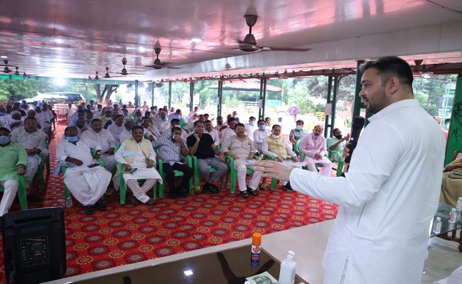तेजस्वी ने सोमवार को पार्टी के एमएलए, एमएलसी और विधानसभा चुनाव में उम्मीदवार रहे चेहरों की बैठक बुलाई. बैठक पूर्व सीएम राबड़ी देवी के सरकारी आवास 10 सर्कुलर में हुई. जिसमें प्रदेश अध्यक्ष जगदानंद सिंह सहित सभी वरिष्ठ नेता भी मौजूद रहे. पांच जुलाई को पार्टी के स्थापना दिवस पर होने वाले कार्यक्रमों की रणनीति राजद ने तैयार की. इस दौरान यह फैसला लिया गया कि कोरोना संक्रमण से बचाव के लिए जारी गाइडलाइन्स का पालन करते हुए राजद अपने 25वां स्थापना दिवस समारोह वर्चुअल तरीके से मनाएगी. जिसमें आरजेडी सुप्रीमो लालू यादव भी दिल्ली से जुड़ेगे.