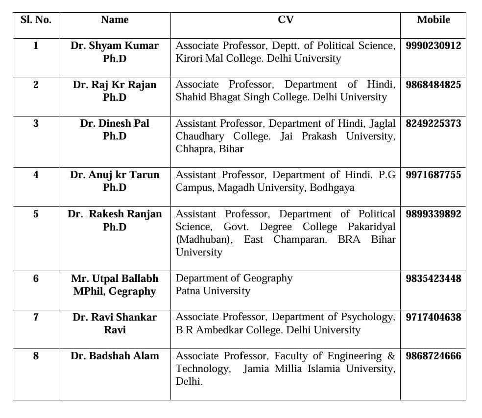 आरजेडी ने आठ नये राष्ट्रीय प्रवक्ताओं में दिल्ली विश्वविद्यालय के प्रोफेसर डॉ. श्याम कुमार, जामिया मिलिया इस्लामिया विश्वविद्यालय दिल्ली के प्रोफेसर डॉ. बादशाह आलम, पटना विश्वविद्यालय के प्रो. उत्पल बल्लभ, बीआरए विश्वविद्यालय मुजफ्फरपुर के प्रोफेसर डॉ. राकेश रंजन, मगध विश्वविद्यालय के प्रोफेसर डॉ. अनुज कुमार तरुण, जेपी विश्वविद्यालय के प्रोफेसर डॉ. दिनेश पाल, डॉ. राजकुमार राजन और डॉ. रविशंकर रवि शामिल हैं.