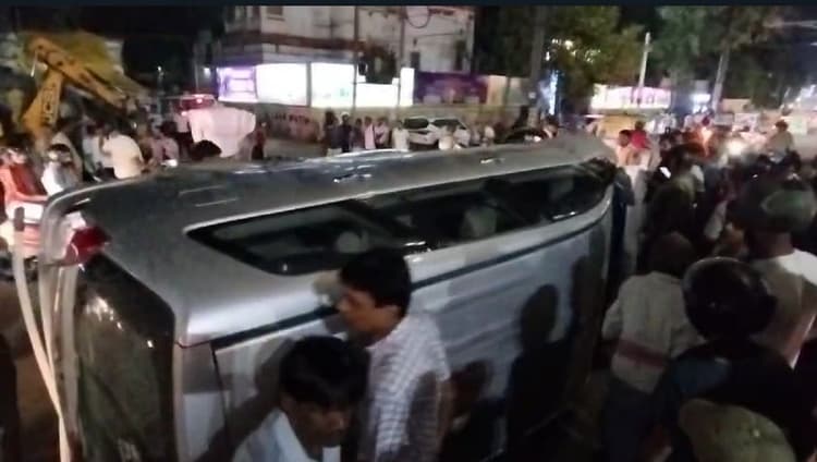Road Accident: पटना. तेज रफ्तार इनोवा कार ने बेली रोड पर हाईकोर्ट से डाकबंगला के बीच रविवार की रात करीब 9:30 बजे कई गाड़ियों में टक्कर मार दी. इस भीषण सड़क हादसे में आठ लोग जख्मी हो गये, जिनमें से तीन को गंभीर हालत में पीएमसीएच भेजा गया. तीनों की हालत नाजुक बनी हुई है. हादसे की जानकारी मिलते ही कई थानों की पुलिस घटनास्थल पर पहुंची. वही आक्रोशित लोगों ने कार को वोल्टास मोड के पास पकड़ लिया और चालक को बाहर निकाल जम कर पिटाई कर दी. इससे चालक सयश गौतम टिकमानी गंभीर रूप से जख्मी हो गया, जिसे अस्पताल में भर्ती कराया गया है. गुस्साये लोगों ने इनोवा कार को सड़क पर पलट दिया और आग लगाने का प्रयास करने लगे.