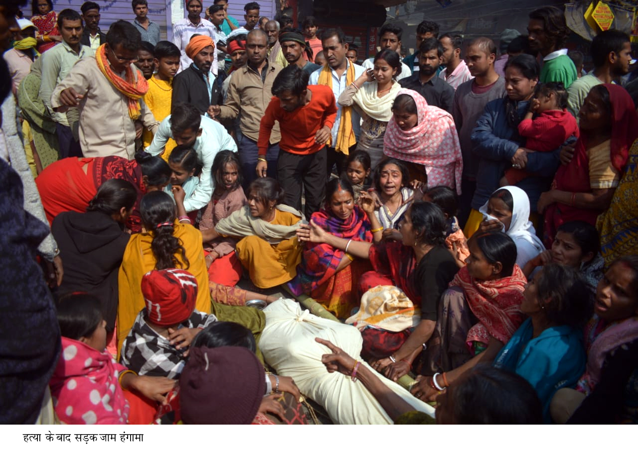 पटना सिटी. सोमवार देर रात श्राद्ध कार्यक्रम में हुई गोलीबारी में हलवाई मनीष की मौत के बाद मंगलवार को परिजनों ने आलमगंज थाना क्षेत्र के मेहंदीगंज गुमटी के पास टायर फूंक आगजनी करते हुए सड़क जाम कर हंगामा किया. सड़क पर शव रख हत्यारों की पहचान कर गिरफ्तार करने, पीड़ित परिवार को न्याय, आश्रितों को मुआवजा और मृतक दोनों बच्चों के लालन पालन की व्यवस्था करने समेत अन्य मांगों को उठाया.