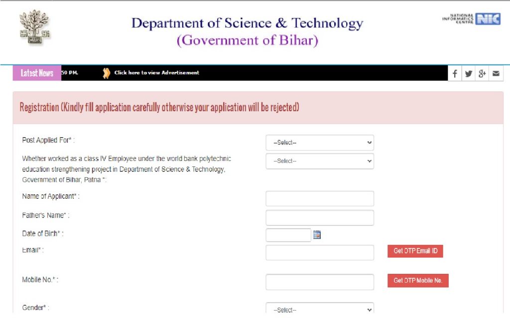 बिहार सरकार के विज्ञान एवं प्रावैधिकी विभाग में कार्यालय परिचारी के पदों पर निकली भर्ती के लिए इच्छुक उम्मीदवार आधिकारिक वेबसाइट पर जाकर 31 अक्टूबर 2022 तक आवेदन कर सकते हैं.