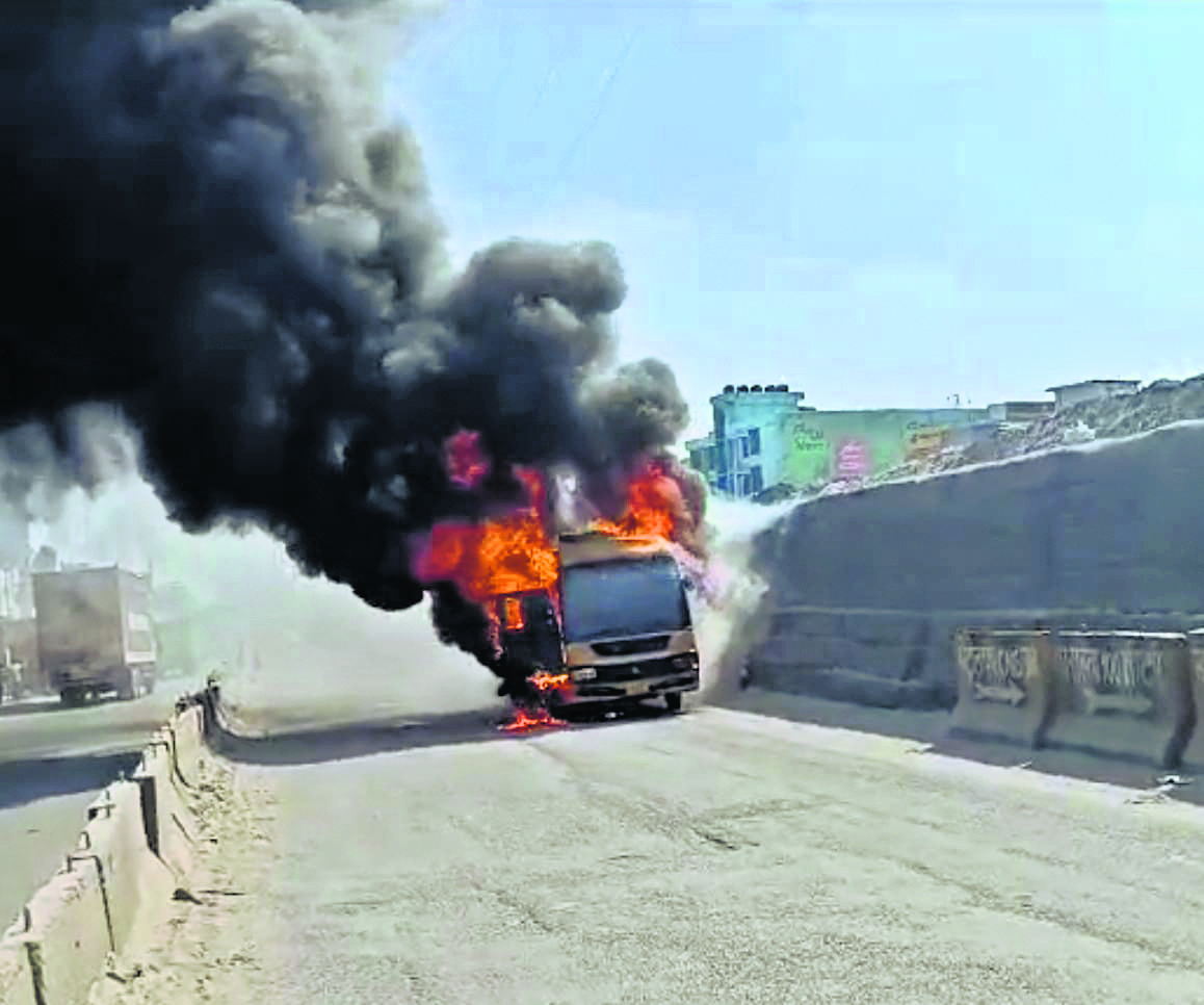 बीच सड़क पर धू-धू कर जली निजी स्कूल की बस, 22 बच्चे बाल-बाल बचे