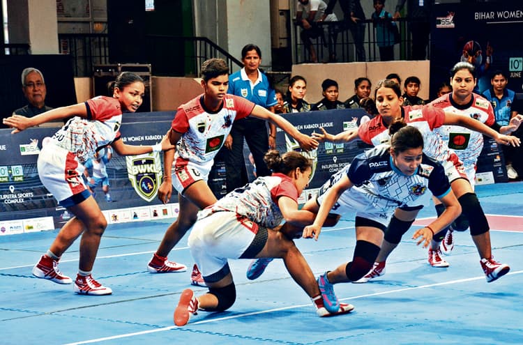 पटना. पाटलिपुत्र स्पोर्ट्स कॉम्प्लेक्स में चल रही प्रथम बिहार वीमेंस कबड्डी लीग बुधवार रात खेले गये मैचों में सीतामढ़ी सेंटीनल्स पर सीवान टाइटेंस ने 30-20 से जीत दर्ज की़ सीतामढ़ी सेंटीनल की सुरुचि कुमारी नौ रेड प्वाइंट्स के साथ बेस्ट रेडर बनी और सीवान टाइटेंस की कोमल कुमारी पांच टैकल प्वाइंट्स लेकर बेस्ट डिफेंडर घोषित हुई़ मगध वरियर्स और पटना पेलिकंस के बीच हुए रोमांचक मुकाबले में मगध वरियर्स ने 29-28 से जीत दर्ज की़ 13 रेड प्वाइंट्स के साथ मगध वरियर्स की सुंदरी कुमारी बेस्ट रेडर और राजकुमारी चार टैकल प्वाइंट्स लेकर बेस्ट डिफेंडर बनी़ सारण स्ट्राइकर्स ने नालंदा निंजास पर 21-15 से जीत दर्ज कर ली़ सारण स्ट्राइकर्स की शिवानी नौ रेड प्वाइंट्स के साथ बेस्ट रेडर व अनुष्का तीन टैकल प्वाइंट्स लेकर बेस्ट डिफेंडर बनी़ गुरुवार सुबह खेले गये पहले मैच में सीवान टाइटेंस ने मगध वरियर्स को हराया़ 11 रेड प्वाइंट्स के साथ सीवान टाइटेंस की आशिक शांडिल्य बेस्ट रेडर और मणि कुमारी छह टैकल प्वाइंट्स लेकर बेस्ट डिफेंडर बनी़ दूसरे मैच में नालंदा निंजास की टीम ने पटना पेलिकंस को 24-13 से शिकस्त दी़ नालंदा निंजास की नैंसी प्रिया बेस्ट रेडर और बेस्ट डिफेंडर बनी़ तीसरे मैच में सीतामढ़ी सेंटीनल्स ने सारण स्ट्राइकर्स को रोमांचक मैच में 29-28 से पराजित किया़