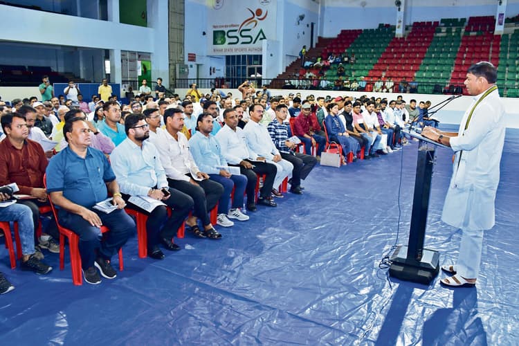 पटना. राज्य की हर पंचायत में खेल क्लब खोलने की सरकारी घोषणा के बाद शनिवार को पाटलिपुत्र स्पोर्ट्स कॉम्प्लेक्स में खेल मंत्री सुरेंद्र मेहता की अध्यक्षता और महेंद्र कुमार, निदेशक खेल विभाग, बिहार राज्य खेल प्राधिकरण के महानिदेशक सह मुख्य कार्यकारी अधिकारी रविंद्रन शंकरन, निदेशक सह सचिव पंकज कुमार राज की उपस्थिति में खेल विभाग, राज्य के विभिन्न खेल संघों के प्रतिनिधियों व जिला खेल पदाधिकारियों के साथ बैठक हुई. इस दौरान खेल मंत्री ने घोषणा की कि 29 अगस्त को राष्ट्रीय खेल दिवस के अवसर पर राजगीर में नवनिर्मित अंतरराष्ट्रीय खेल अकादमी का उद्घाटन किया जाएगा. इसी दिन राजगीर में ही राज्य खेल सम्मान समारोह भी आयोजित किया जायेगा. खेल मंत्री सुरेन्द्र मेहता ने खेल छात्रवृत्ति योजना के पोर्टल का बटन दबाकर उद्घाटन किया़ खेल मंत्री ने कहा कि खिलाड़ियों के विकास में आर्थिक सहयोग के लिए खेल छात्रवृत्ति योजना बहुत मह्त्वपूर्ण भूमिका निभायेगी. अंतरराष्ट्रीय पदक विजेता खिलाड़ियों को छात्रवृत्ति नीति की उत्कर्ष योजना के तहत 25 लाख रुपये सालाना छात्रवृत्ति की व्यवस्था है. राष्ट्रीय पदक जीतने वालों को सक्षम योजना के तहत पांच लाख की छात्रवृत्ति की व्यवस्था है ताकि आर्थिक अभाव में उनका प्रशिक्षण और प्रयास बाधित न हो.