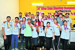 पटना. सीवान में आयोजित स्टेट शूटिंग चैंपियनशिप में पटना की पाटलिपुत्र गन्स शूटिंग एकेडमी का दबदबा रहा. एकेडमी के शूटरों ने कुल 73 पदक जीते. महिला वर्ग के ओपन साइट राइफल में सृष्टि श्रेया ने छह स्वर्ण पदक जीत कर तहलका मचा दिया. सीनियर पुरुष वर्ग की 25 मीटर सेंटर फायर पिस्टल की टीम स्पर्धा में चेतन आनंद, सुशांत कुमार, मनीष कुमार ने रजत पदक जीता. एयर राइफल पुरुष वर्ग की विभिन्न स्पर्धाओं में अर्नव सिंह ने दो स्वर्ण और तीन रजत पदक जीते. आयुष कुमार ने तीन रजत और एक कांस्य पर कब्जा किया. आशीष कुमार ने तीन रजत और एक कांस्य पदक हासिल किया. सीनियर वर्ग के 50 मीटर टीम पिस्टल में मनीष कुमार, सुशांत कुमार, सागर कुमार ने रजत पदक जीता. रुद्र प्रताप सिंह राजपूत ने विभिन्न वर्ग की स्पर्धाओं में तीन स्वर्ण, एक रजत और एक कांस्य पदक प्राप्त किया. प्रिंस कुमार ने दो स्वर्ण और एक रजत पदक पर निशाना साधा. महिला वर्ग की विभिन्न स्पर्धाओं में भाव्या अग्रवाल ने चार स्वर्ण पदक अपने नाम किया. सिमरन भारती को दो रजत पदक मिले.