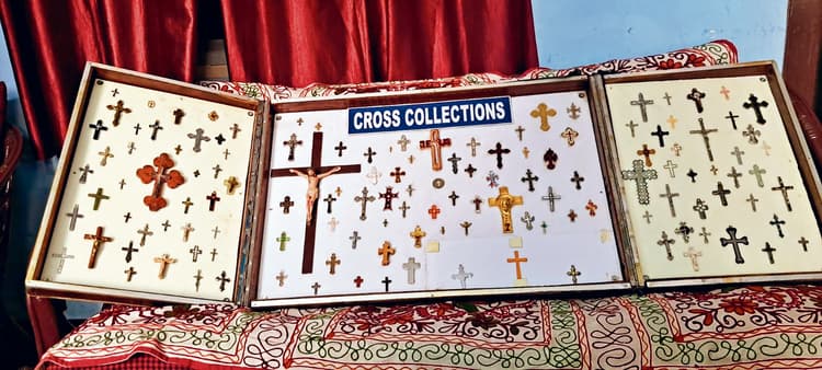 लाइफ रिपोर्टर @ पटना मगध कॉलोनी (कुर्जी) निवासी सुशील लोबो, रानी, मेलवीन और एलविन लोबो संयुक्त रूप से क्रूस संग्रह कर अजूबा इतिहास रचा है. प्रभु यीशु मसीह का क्रूस (सलीब) पर प्राण त्याग किया जाना दुनियाभर के इसाईयों का धार्मिक चिह्न पहचान को क्रूस कहते हैं. इनके पास यह विभिन्न प्रकार के रूप में मतलब आधा इंच से लेकर 14 इंच तक की 125 क्रूस हैं, जो देश के विभिन्न राज्यों के चर्चित चर्च से एकत्रित की गयी है. इनमें बेतिया, पटना, मुजफ्फरपुर, रांची, कोलकाता, दिल्ली, लखनऊ, मंसूरी, चेन्नई, बंगलौर, मैसूर, ऐरनाकुलम, गोवा, दार्जिलिंग, मुंबई से संग्रह की गयी है. इसे संग्रह करने में सालों लग गये, जो अपने आप में धर्म के प्रति कर्मठता और जागरूकता का प्रतीक है. सुशील लोबो ने बताया कि यह क्रूस संग्रह संत पिता पोप फ्रान्सिस द्वारा घोषित जुबिली वर्ष 2025 में आशा की तीर्थयात्री के पुण्य अवसर पर एक सुंदर संदेश ईसाईयों के बीच देती है.