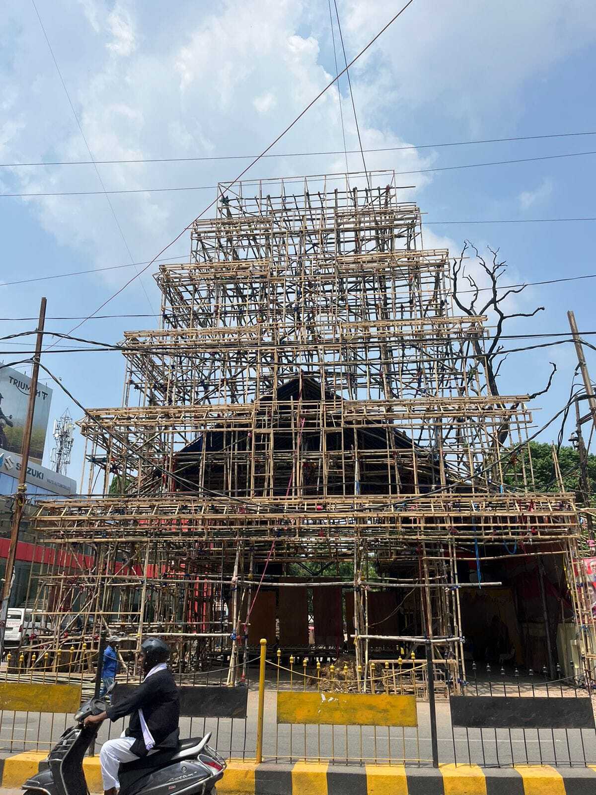 अपने नायाब पंडाल व सजावट के लिए मशहूर राजधानी के प्रसिद्ध डाकबंगला चौराहा पर दक्षिण भारत के मंदिर की झांकी दिखेगी. दुर्गा पूजा की शुरुआत होने में महज 30 दिन बचे हैं और डाकबंगला के नवयुवक संघ दुर्गा पूजा समिति की ओर से पंडाल का निर्माण कार्य शुरू कर दिया गया है. प्रारंभिक ढांचा लगभग बनकर तैयार हो गया है. लगभग 800 मीटर से लेकर एक किलोमीटर तक की दूरी तक 40 सीसीटीवी कैमरे लगाये जायेंगे. चूंकि इस बार दुर्गा पूजा में अष्टमी व नवमी एक ही दिन होने की वजह से श्रद्धालुओं की भीड़ अधिक होने की संभावना है. इसके लिए अभी से तैयारी शुरू कर दी गयी है. पंडाल के निकट वॉच टावर लगाया जायेगा ताकि सुरक्षा में लगे जवान वहां से निगरानी कर सकें. पंडाल के आस-पास की दीवारों पर एलइडी वाल की व्यवस्था भी की जा रही है, जिससे पूरा डाकबंगला इलाका मां के मंदिर जैसा प्रतीत होगा. जानकारी के लिए बता दें कि इस बार पूजा समिति में करीब 500 से अधिक लोग सदस्य के तौर पर पंडाल के आस-पास रहेंगे. पूजा समिति के कोषाध्यक्ष अमित कुमार ने बताया कि हर साल की तरह इस बार भी डाकबंगला में पूजा-पंडाल की सजावट में काफी कुछ अलग देखने को मिलेगा. लाइटनिंग व सीसीटीवी की व्यवस्था तारामंडल से लेकर डाक बंगला चौराहा तक की जायेगी. इस बार प्रसाद के तौर पर खिचड़ी व हलवा बांटा जायेगा. उन्होंने बताया कि काफी संख्या में श्रद्धालुओं की भीड़ एक साथ जुटेगी. पुलिस प्रशासन की व्यवस्था मौजूद रहेगी. माता को भोग लगाने के लिए खीर व तस्मई बनाया जायेगा. पूजा के बाद श्रद्धालुओं में इसका वितरण किया जायेगा. इस साल दुर्गा पूजा में डाक बंगला में पंडाल नवरात्र के पांचवें दिन ही शुरू कर दिया जायेगा. ताकि मां दुर्गा के भक्तों को एक दिन पहले से ही दक्षिण भारत मंदिर की झांकी दिख सके. इसे लेकर लोगों में उत्साह देखने को मिल रहा है. जिलाधिकारी के साथ शहर के सभी पूजा समिति बैठक का कर रहे इंतजार :
