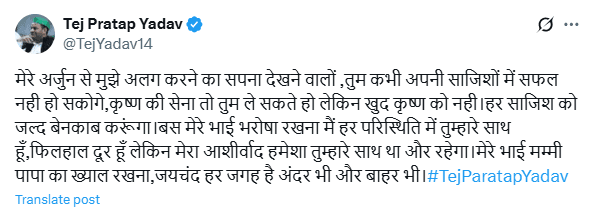 Tej Pratap Yadav: 'जयचंद' विवाद छिड़ा तो तेजप्रताप यादव का एक और पोस्ट आया, इस बार तेजस्वी के लिए लिखा खुला संदेश