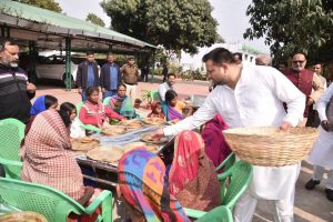 आज गणतंत्र दिवस के मौके पर तेजस्वी यादव ने स्वयं अपने हाथों से गरीब लोगों को खाना परोसा. तेजस्वी द्वारा खाना परोसे जाने के कारण लोगों के चेहरे पर खुशी देखें को भी मिली. इस भोज में जहां तेजस्वी यादव सब्जी परोसते दिखें तो वहीं पार्टी के प्रदेश अध्यक्ष जगदानंद सिंह जलेबी चला रहे थे.