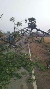 आंधी-पानी में सड़क पर गिरा खंभा व ट्रांसफार्मर चार दिन बाद भी हटाया