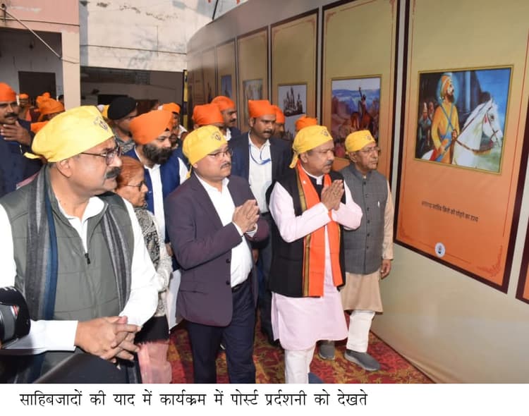 पटना सिटी. खालसा पंथ के संस्थापक गुरु गोविंद सिंह जी महाराज के वीर साहिब जादों माता गुजरी के बलिदान को नमन करता है. धर्म की रक्षा के लिए चारों साहिब जादों ने जो बलिदान दिया वह सर्वोच्च बलिदान के रूप में इतिहास में दर्ज है. यह बात भाजपा के प्रदेश अध्यक्ष सह मंत्री डॉ दिलीप जायसवाल, उप मुख्यमंत्री विजय कुमार सिन्हा व विधानसभा अध्यक्ष नंदकिशोर यादव ने बाड़े की गली स्थित गुरु तेग बहादुर एकेडमी में वीर बाल दिवस पर आयोजित कार्यक्रम में कही. इन लोगों ने कहा कि वर्ष 2022 में 9 जनवरी को प्रधानमंत्री नरेंद्र मोदी ने श्री गुरु गोविंद सिंह के छोटे साहिब जादों बाबा जोरावर सिंह और बाबा फतेह सिंह के बलिदान को नमन करते हुए वीर बाल दिवस मनाने की घोषणा की थी. साहिब जादों के त्याग, वीरता और बलिदान युगों-युगों तक राष्ट्र भक्ति की प्रेरणा देता रहेगा. युवा वर्ग साहिबजादों के बलिदान से प्रेरणा ले सशक्त राष्ट्र निर्माण कर सकते हैं. संचालन विधान पार्षद प्रमोद चंद्रवंशी ने किया. आयोजन में विधायक संजीव चौरिसया, महापौर सीता साहू, तख्त साहिब प्रबंधक कमेटी के अध्यक्ष जगजोत सिंह सोही, महासचिव इंद्रजीत सिंह, कनीय उपाध्यक्ष गुरविंदर सिंह, सदस्य महेंद्र पाल सिंह ढिल्लन, हरपाल सिंह जाैहल, प्रदेश प्रवक्ता प्रभाकर मिश्र, महानगर अध्यक्ष अभिषेक कुमार, राजेश साह, प्रदीप काश, पूर्व उपमहापौर संतोष मेहता समेत अन्य उपस्थित थे. आयोजन में बच्चों ने गुरुवाणी का पाठ की और शौर्य गान किया. मौके पर आयोजित निबंध, भाषण प्रतियोगिता के विद्यार्थियों को भी सम्मानित किया गया.