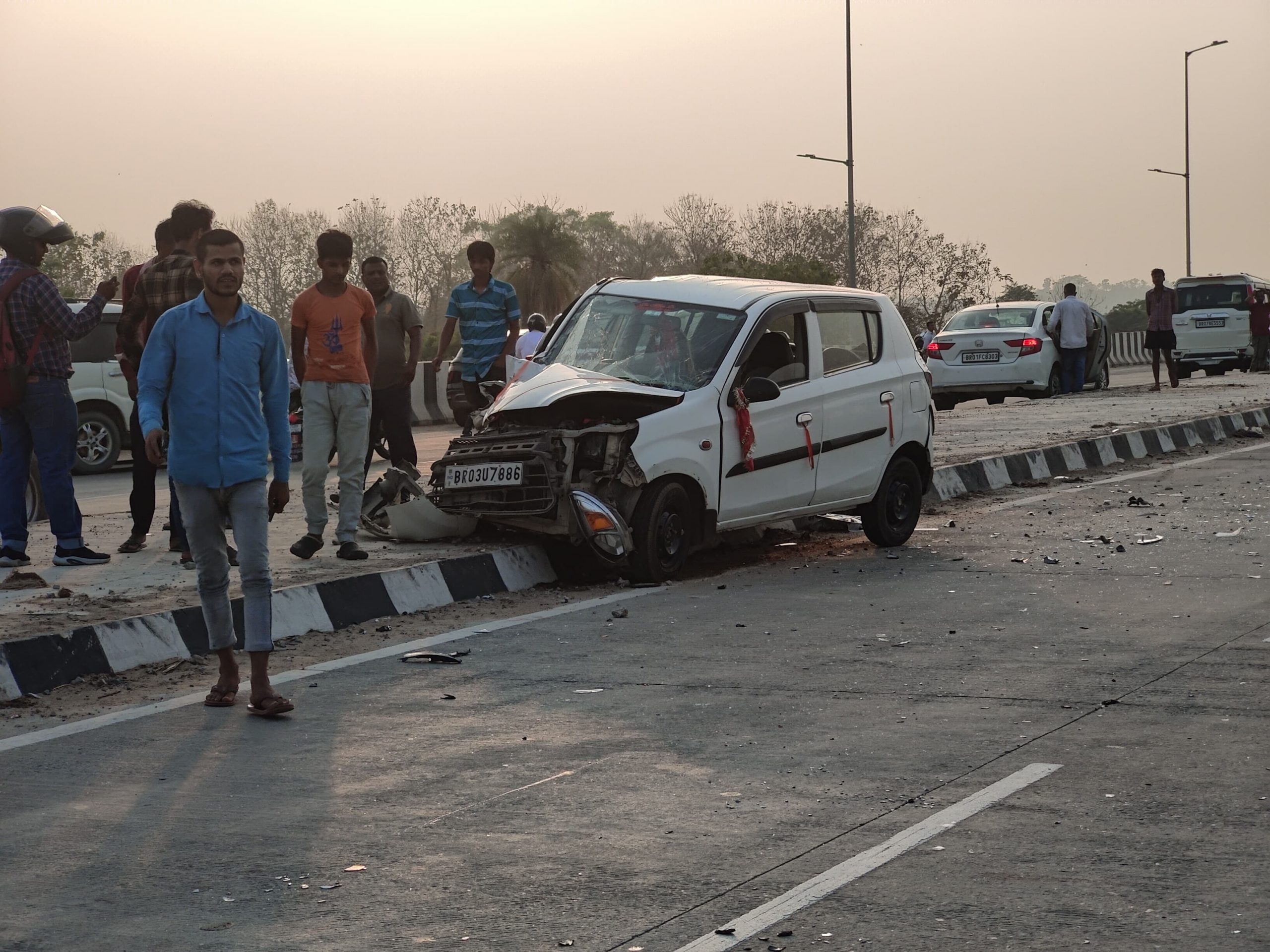 कार में सवार सभी लोग मालदह, थाना हॉबीपुर के निवासी हैं. वहीं, दूसरी कार में केवल चालक था, जो गलत दिशा से आरा की ओर जा रहा था. इस दौरान दोनों कार में टक्कर हो गयी. सौभाग्य से एयरबैग खुलने से बड़ा हादसा टल गया और सभी यात्रियों की जान बच गयी, हालांकि सभी को गंभीर चोटें आयी है. घायलों को बिहटा पुलिस की मदद से इएसआइसी अस्पताल में भर्ती कराया गया है.घायलों दुलाल हलदर, दीपांकर हलदर, कौशिक हलदर, आकाश हलदर, तुम्पा हलदर, जबकि दूसरी कार के चालक को भी मामूली चोट आयी है.