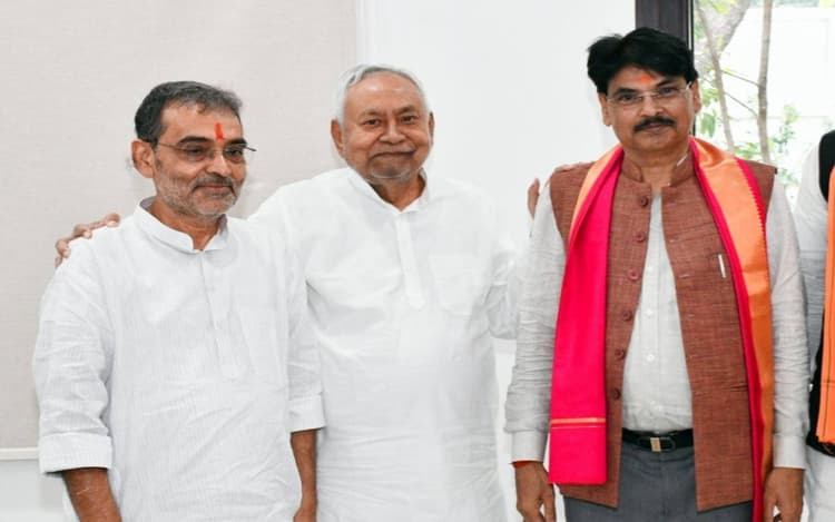 Rajya Sabha Election: बिहार से राज्यसभा की दो सीटों पर एनडीए उम्मीदवारों की निर्विरोध जीत हुई है. मंगलवार को नाम वापसी का अंतिम दिन था, इसमें किसी ने नाम वापस नहीं लिया तो विधानसभा की सचिव ने उपेन्द्र कुशवाहा और मनन मिश्रा को जीत का सर्टिफिकेट प्रदान किया. इसके बाद उपेंद्र कुशवाहा और मनन मिश्र ने मुख्यमंत्री नीतीश कुमार से 1 अणे मार्ग में मुलाकात की. मुख्यमंत्री ने दोनों नवनिर्वाचित सांसदों को जीत की शुभकामनाएं दीं.