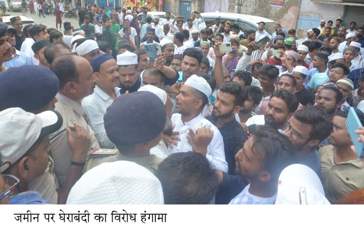 पटना सिटी. चौक थाना के पीछे मदरसा गली में स्थित मदरसा मस्जिद की जमीन से अवैध कब्जा हटाने और घेराबंदी के खिलाफ लोगों का गुस्सा फूट पड़ा. आक्रोशित लोगों ने घेराबंदी कार्य को रोकते हुए तोड़फोड़ व आगजनी की. हंगामा पर उतरे लोगों का कहना था कि जमीन पर जबरन कब्जा कर बेचा जा रहा है. लोगों ने निर्माण हुए चहारदीवारी को तोड़ दिया साथ ही झोंपड़ी में आग लगा दी. बाइक को क्षतिग्रस्त कर आग लगाने का प्रयास किया गया. कार्य कर रहे श्रमिकों को भी मारपीट कर खदेड़ दिया. इसके बाद हंगामा कर रहे लोग चौक थाना पहुंच कर घेराव व प्रदर्शन करने लगे. इस दौरान चौक थाना मोड़ को भी जाम कर दिया. प्रदर्शनकारियों का कहना है कि मस्जिद की जमीन को अवैध कब्जा से मुक्त कराया जाये. घेराबंदी कार्य को रोका जाये. घेराबंदी से नमाज पढ़ने में मुश्किल होगी. इस मामले में डीएसपी द्वितीय डॉ गौरव कुमार ने बताया कि जमीन को लेकर दो पक्षों में विवाद है. इसी मामले में हंगामा कर रहे लोगों को समझा बुझा दिया गया है. पुलिस ने स्थल पर धारा 144 लगा दिया है. मामले में उच्चधिकारियों के निर्देश के आलोक में कार्रवाई होगी. पुलिस बल उक्त स्थल पर निगरानी कर रही है.